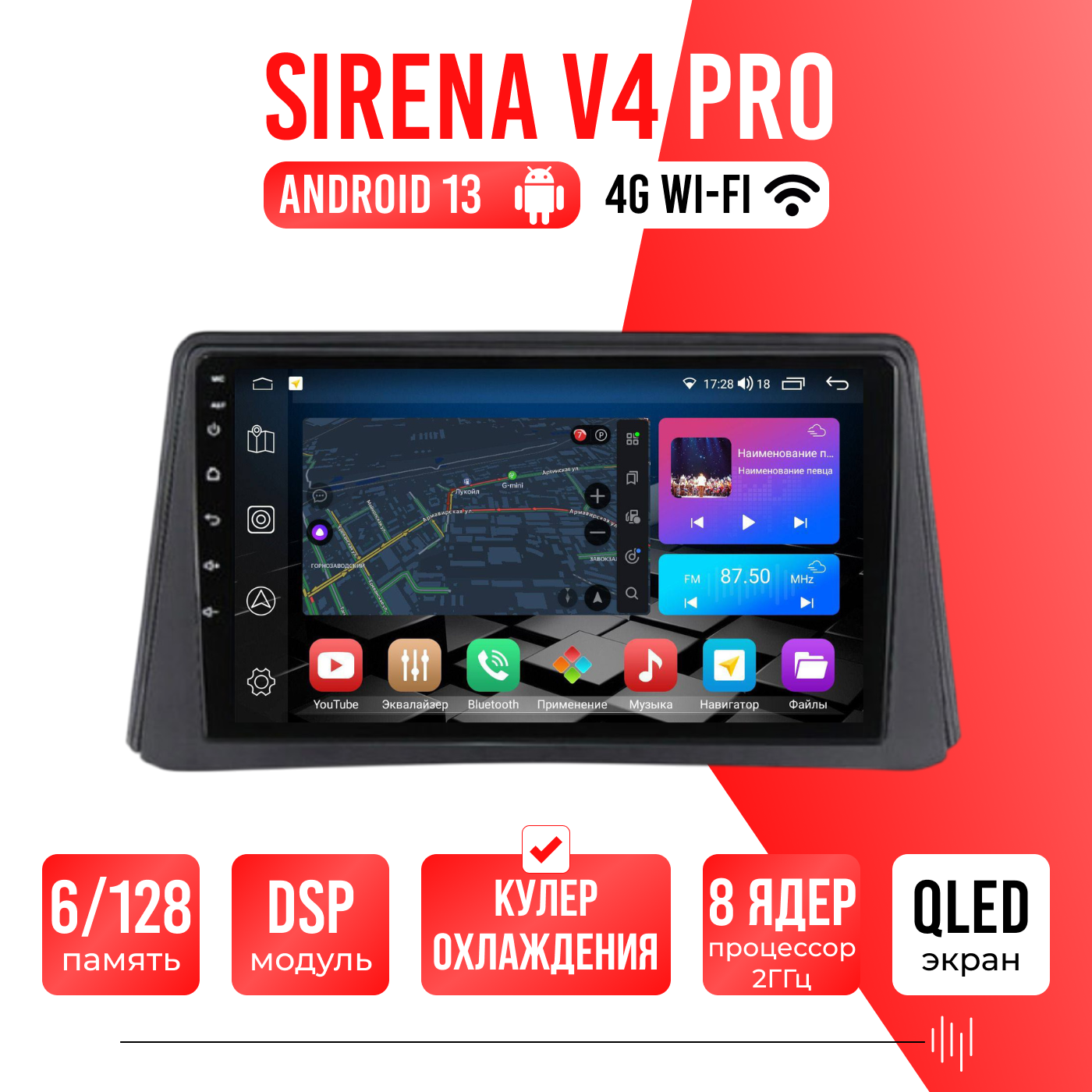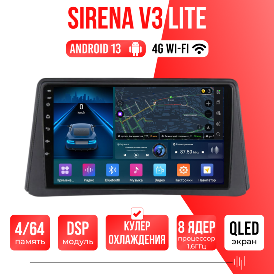 Sirena V4 PRO ОС Android Память 6/128, Wi-Fi, 4G, QLED экран. Звуковой процессор DSP. Процессор 8 ядер.