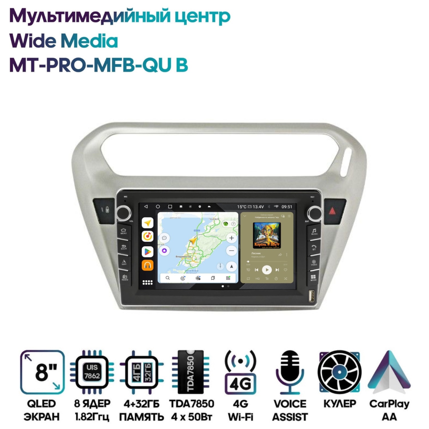 Магнитола Wide Media MT-PRO-MFB-QU B 4/32 с механической регулировкой громкости