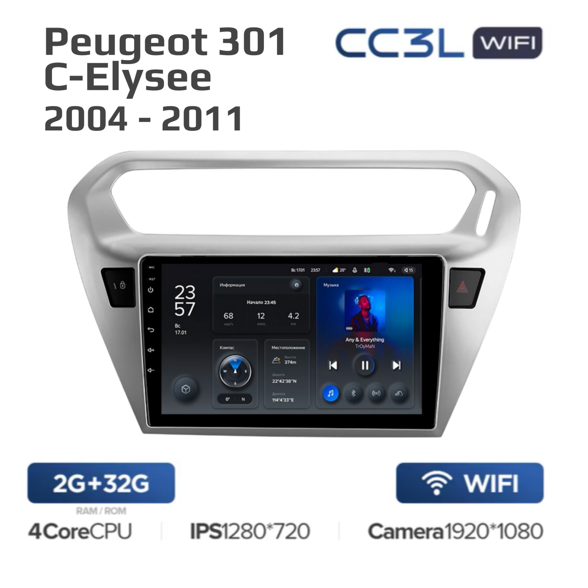 Teyes CC3L ОС Android Память 2/32, Wi-Fi, IPS экран. Звуковой процессор DSP.