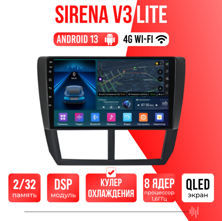Sirena V3 Lite ОС Android Память 2/32, Wi-Fi, 4G,QLED экран. Звуковой процессор DSP. Процессор 8 ядер