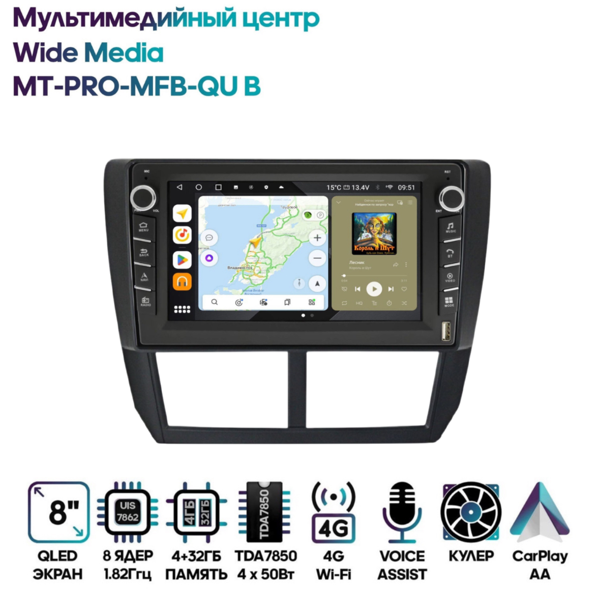 Магнитола Wide Media MT-PRO-MFB-QU B 4/32 с механической регулировкой громкости