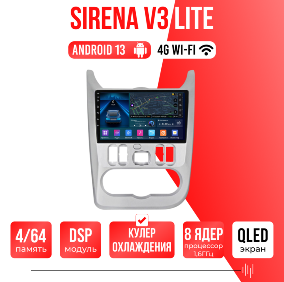 Sirena V3 Lite ОС Android Память 4/64, Wi-Fi, 4G,QLED экран. Звуковой процессор DSP. Процессор 8 ядер.