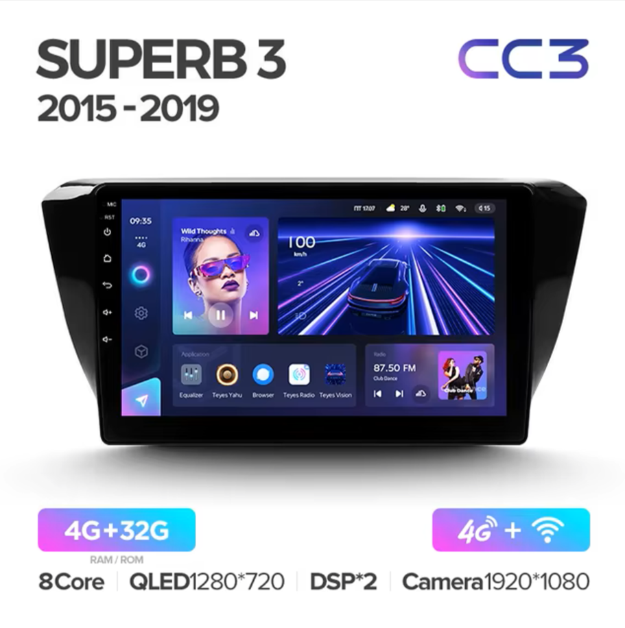 Teyes CC3 ОС Android Память 4/32, Wi-Fi, 4G, QLED экран. Звуковой процессор DSP. Процессор 8 ядер.