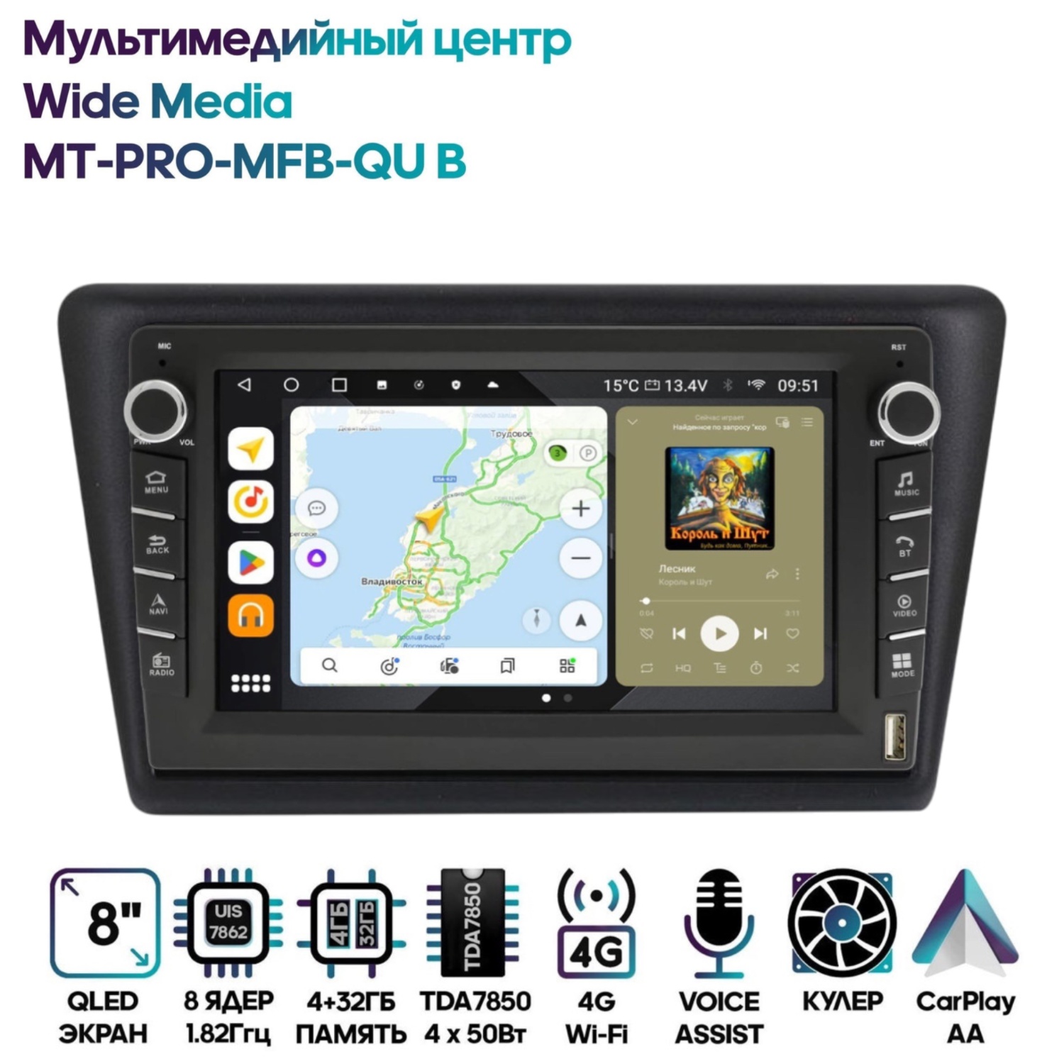 Магнитола Wide Media MT-PRO-MFB-QU B 4/32 с механической регулировкой громкости