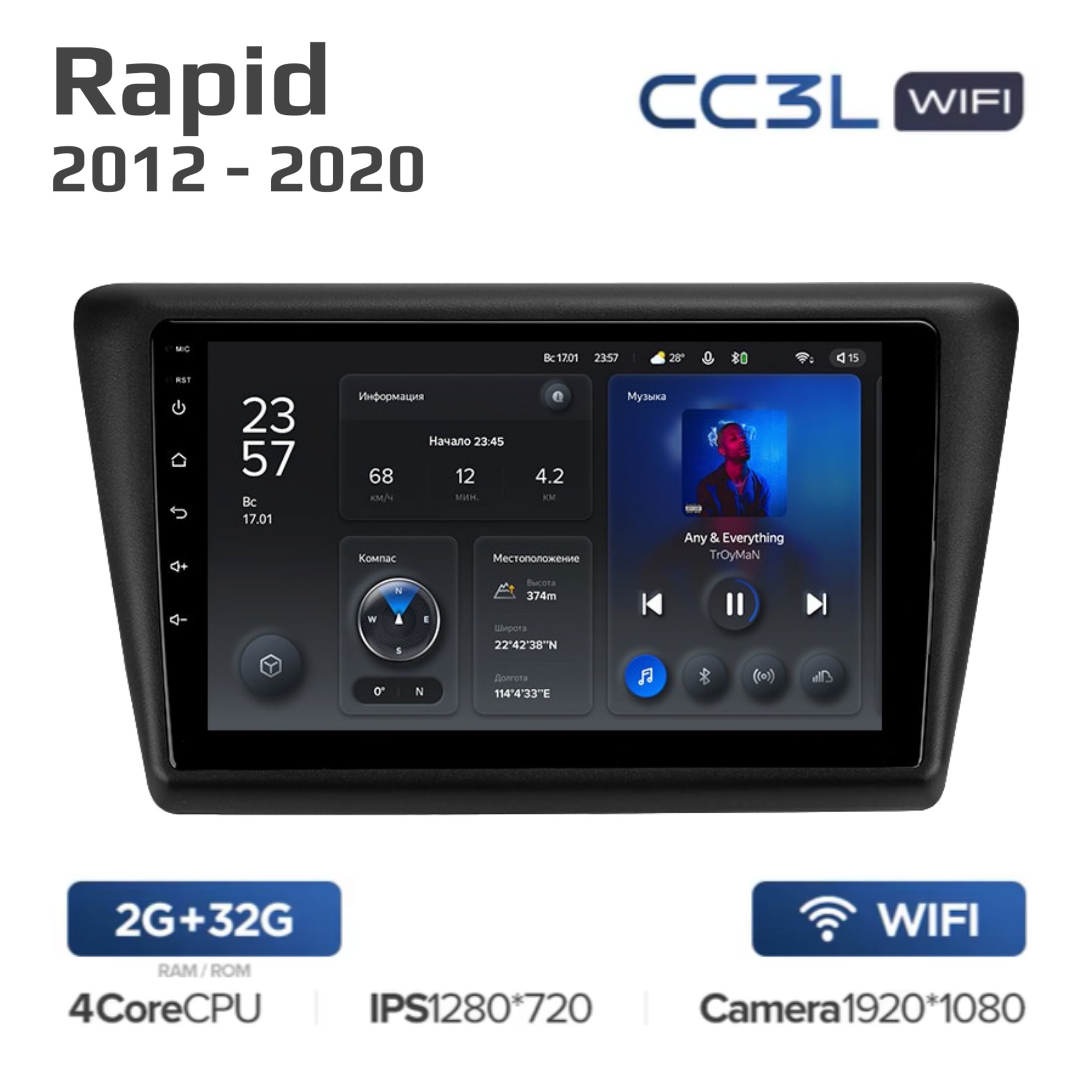 Teyes CC3L ОС Android Память 4/32, Wi-Fi, 4G, IPS экран. Звуковой процессор DSP. Процессор 8 ядер.
