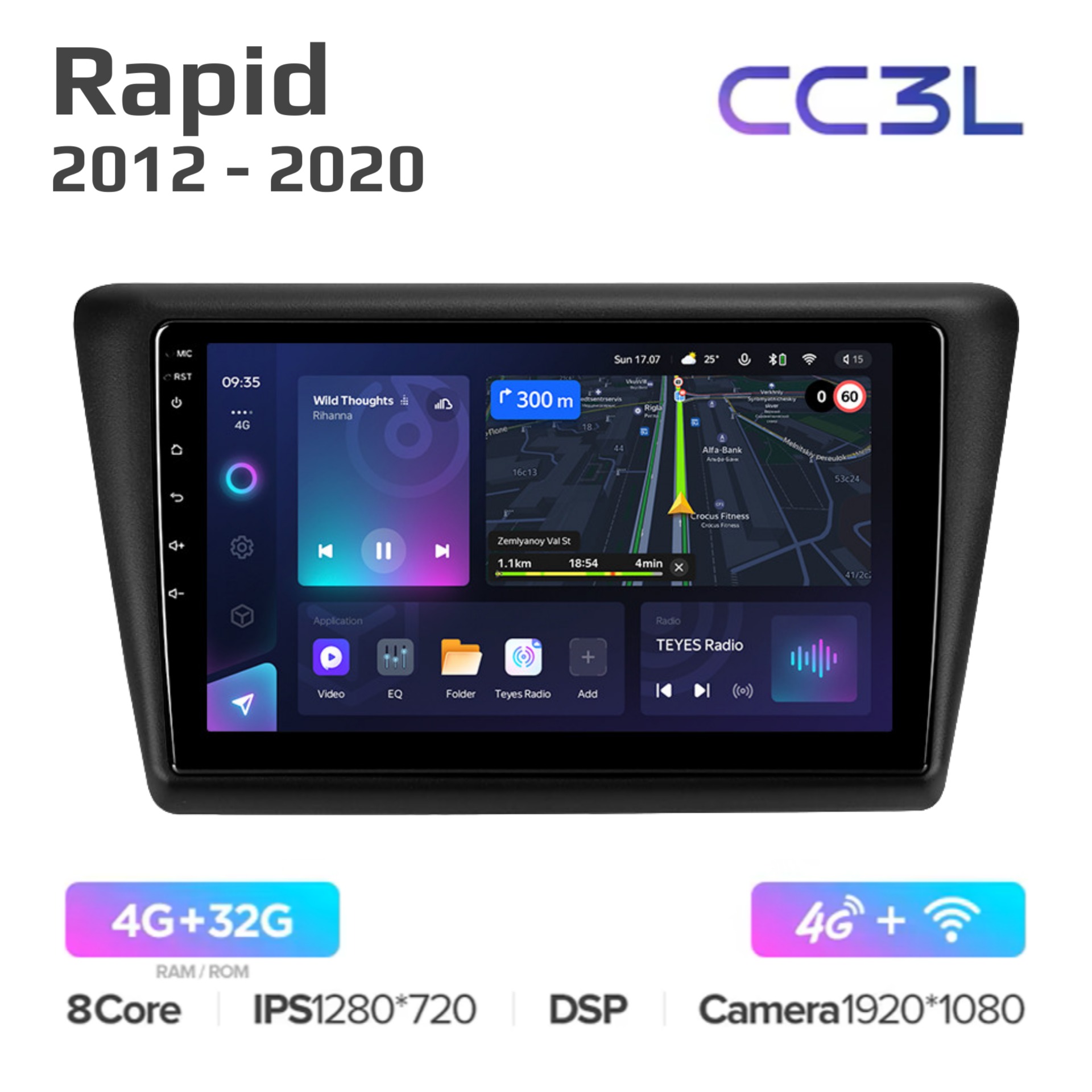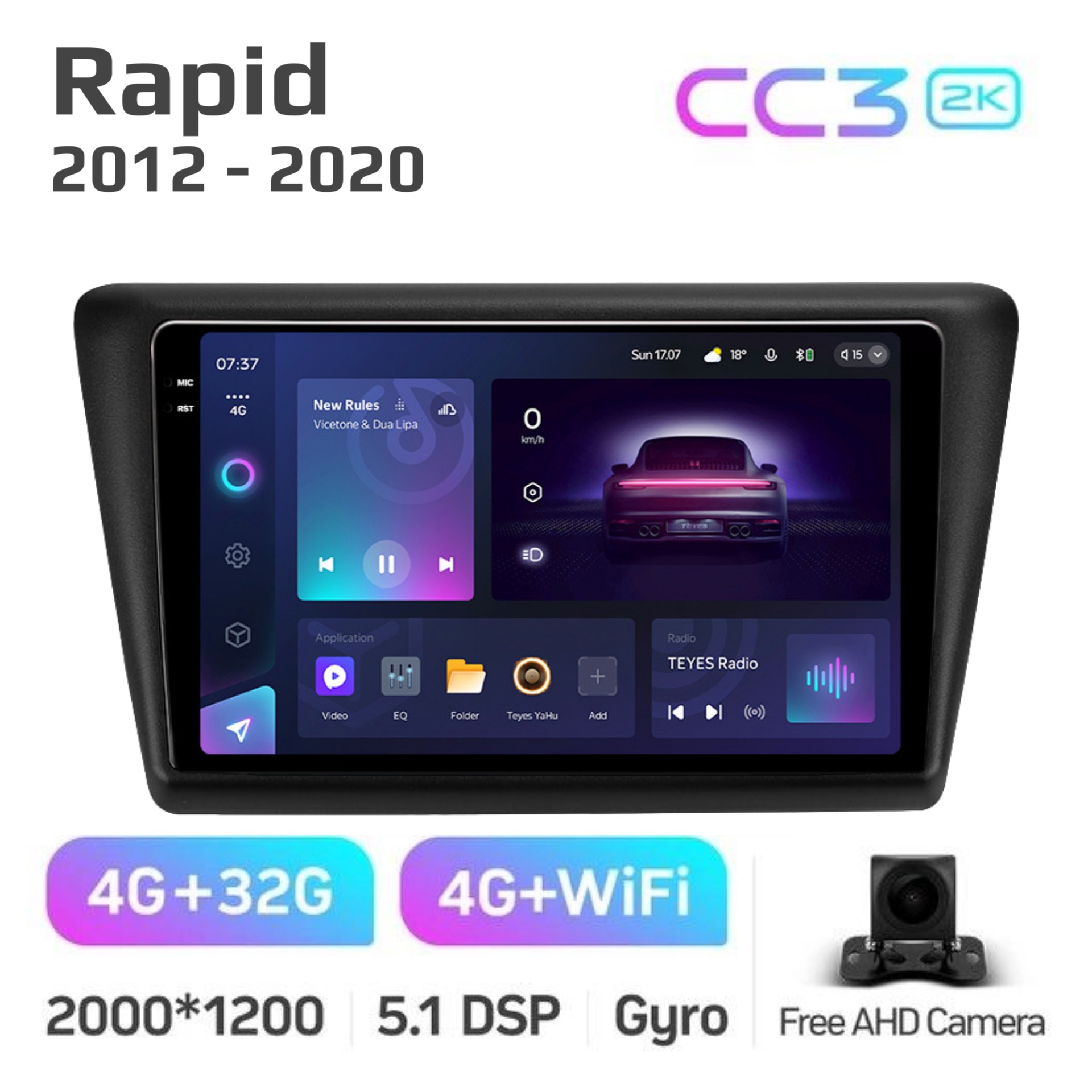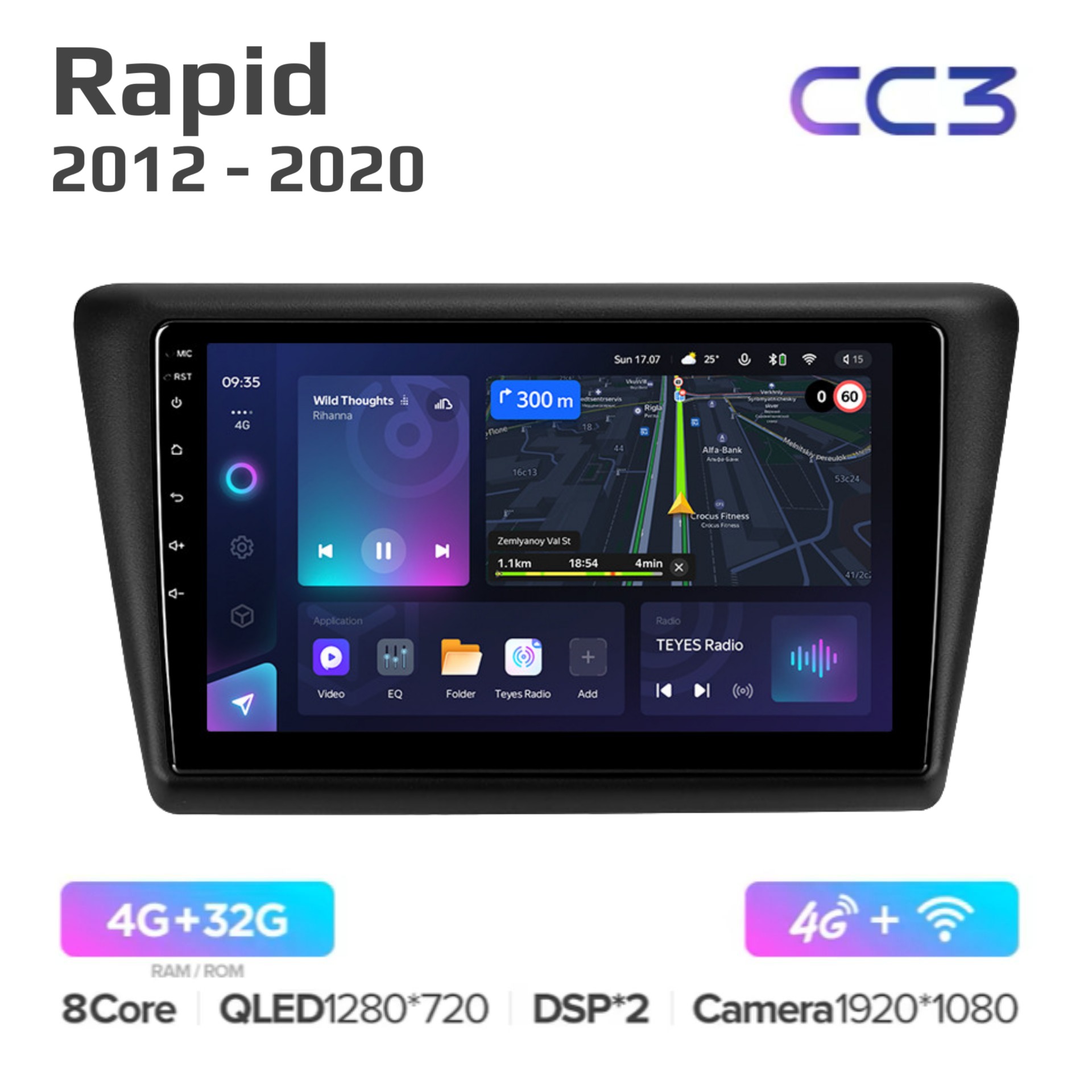 Teyes CC3 ОС Android Память 4/32, Wi-Fi, 4G, QLED экран. Звуковой процессор DSP. Процессор 8 ядер.