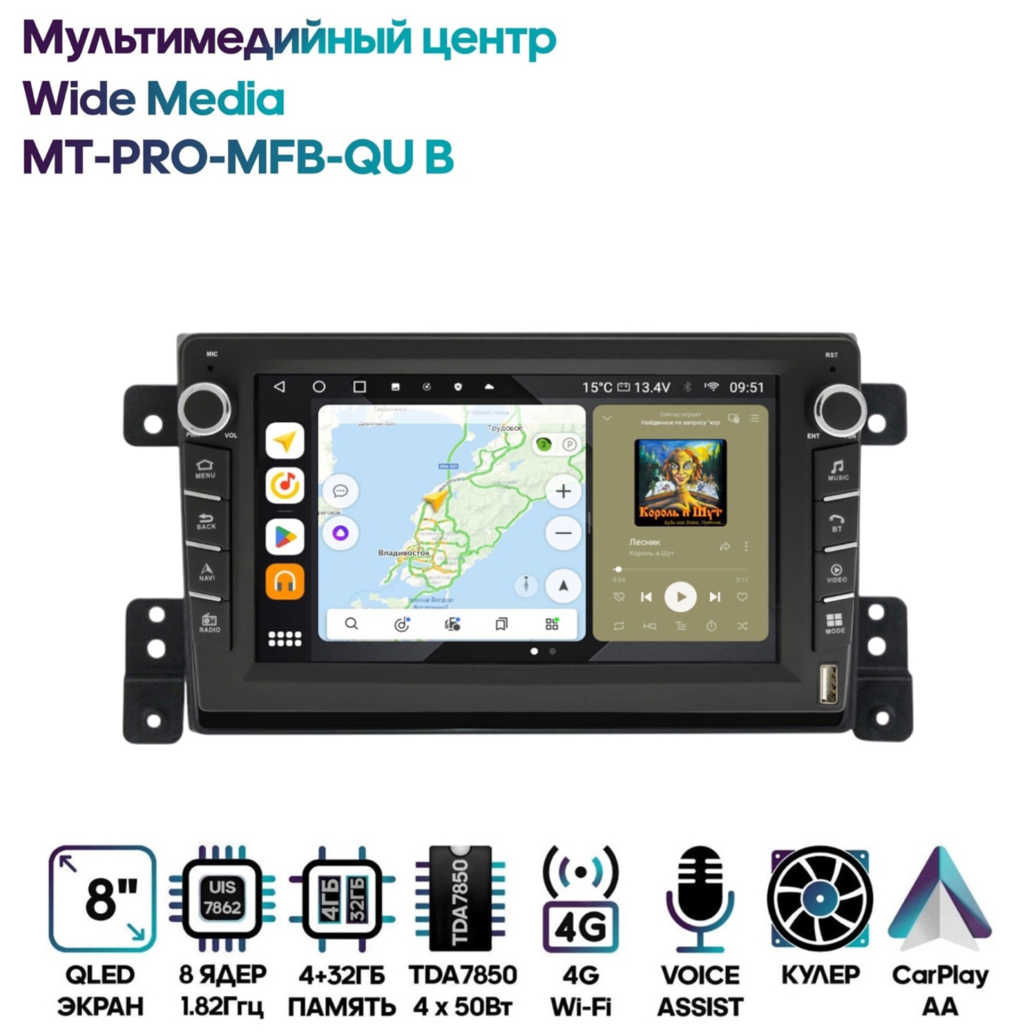 Магнитола Wide Media MT-PRO-MFB-QU B 4/32 с механической регулировкой громкости