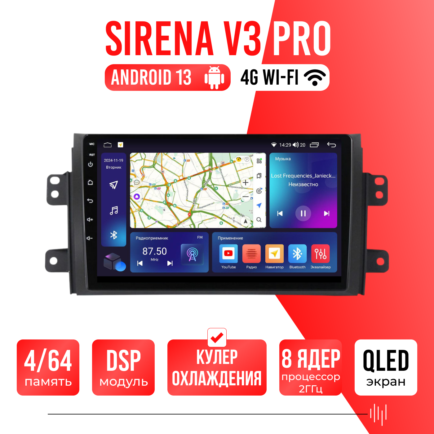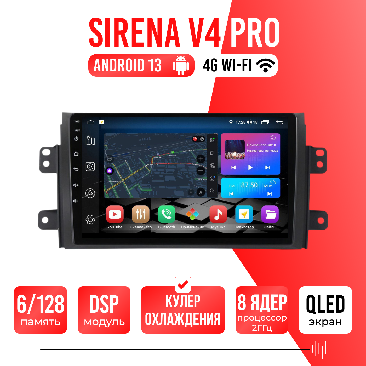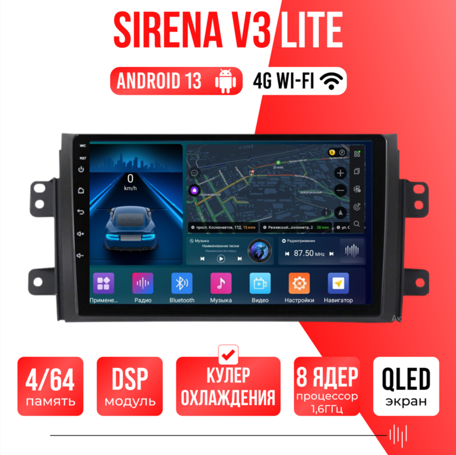 Sirena V4 PRO ОС Android Память 6/128, Wi-Fi, 4G, QLED экран. Звуковой процессор DSP. Процессор 8 ядер.