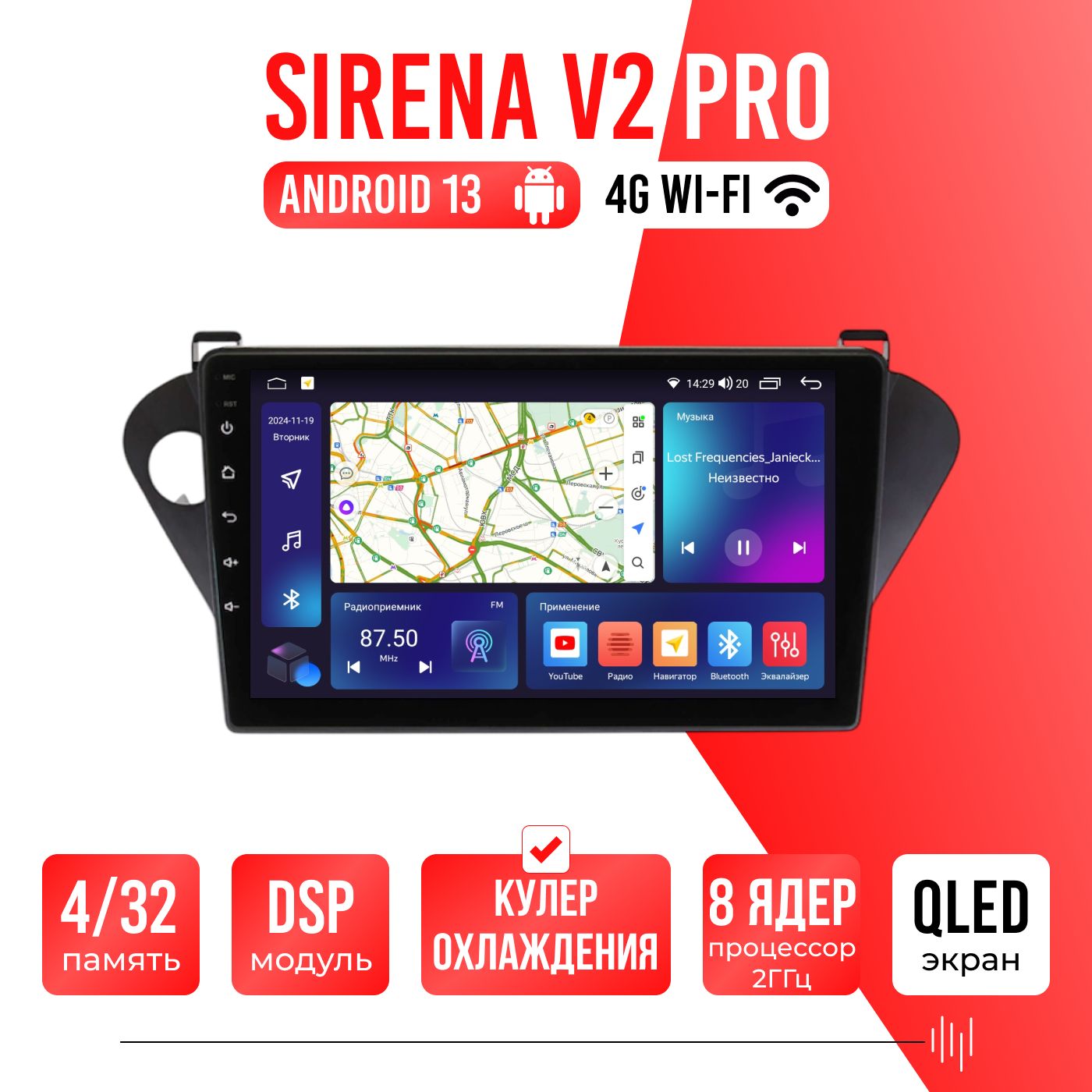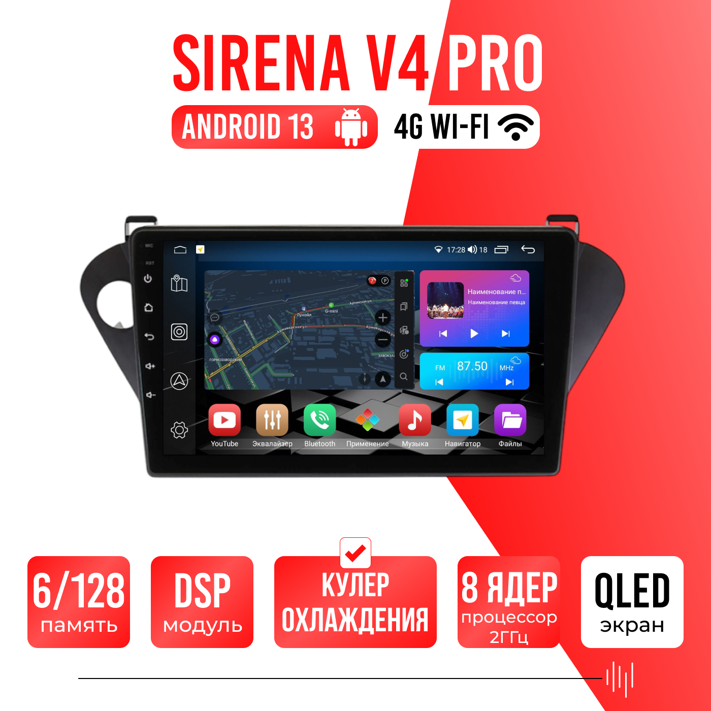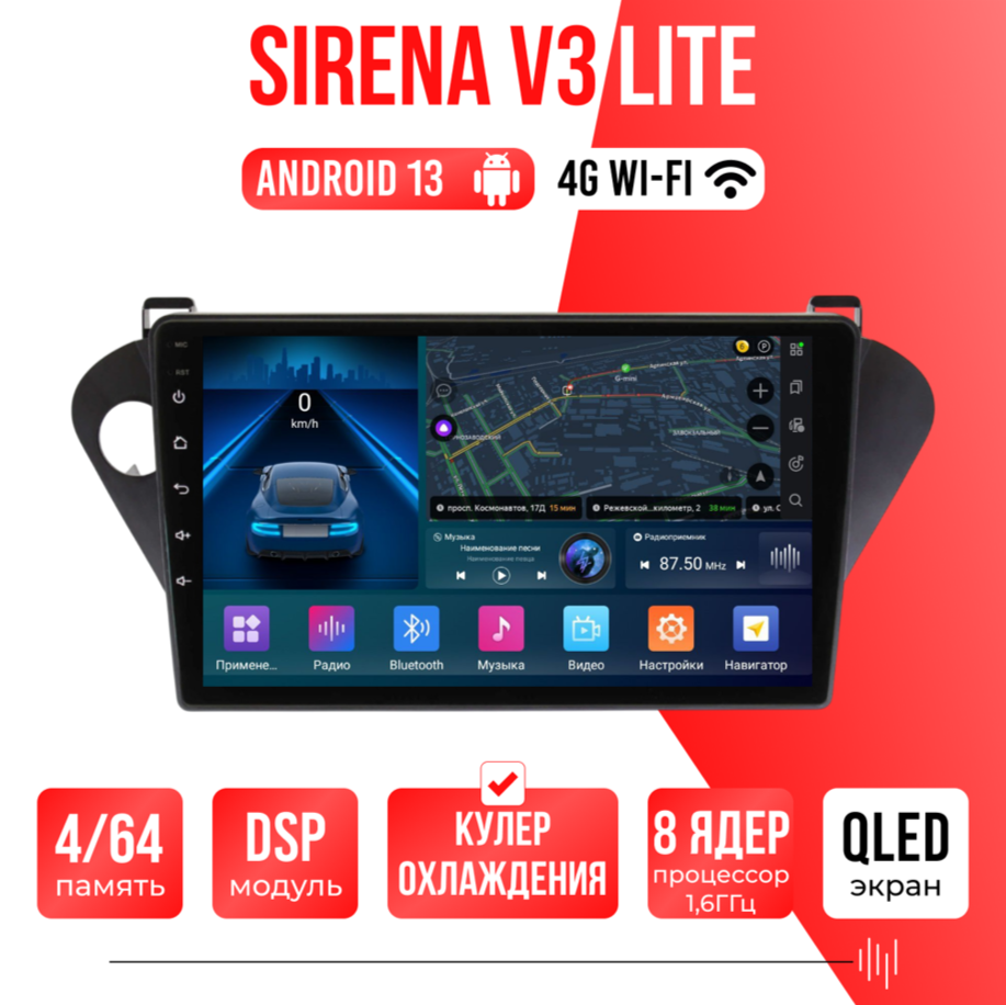 Sirena V4 PRO ОС Android Память 6/128, Wi-Fi, 4G, QLED экран. Звуковой процессор DSP. Процессор 8 ядер.