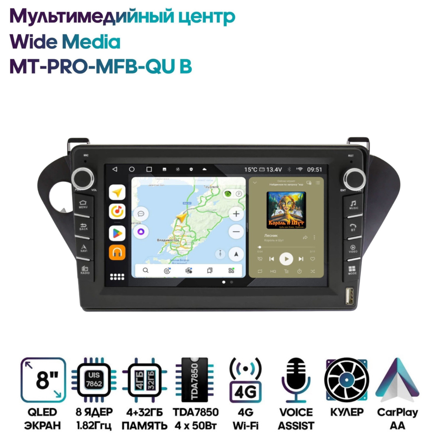 Магнитола Wide Media MT-PRO-MFB-QU B 4/32 с механической регулировкой громкости