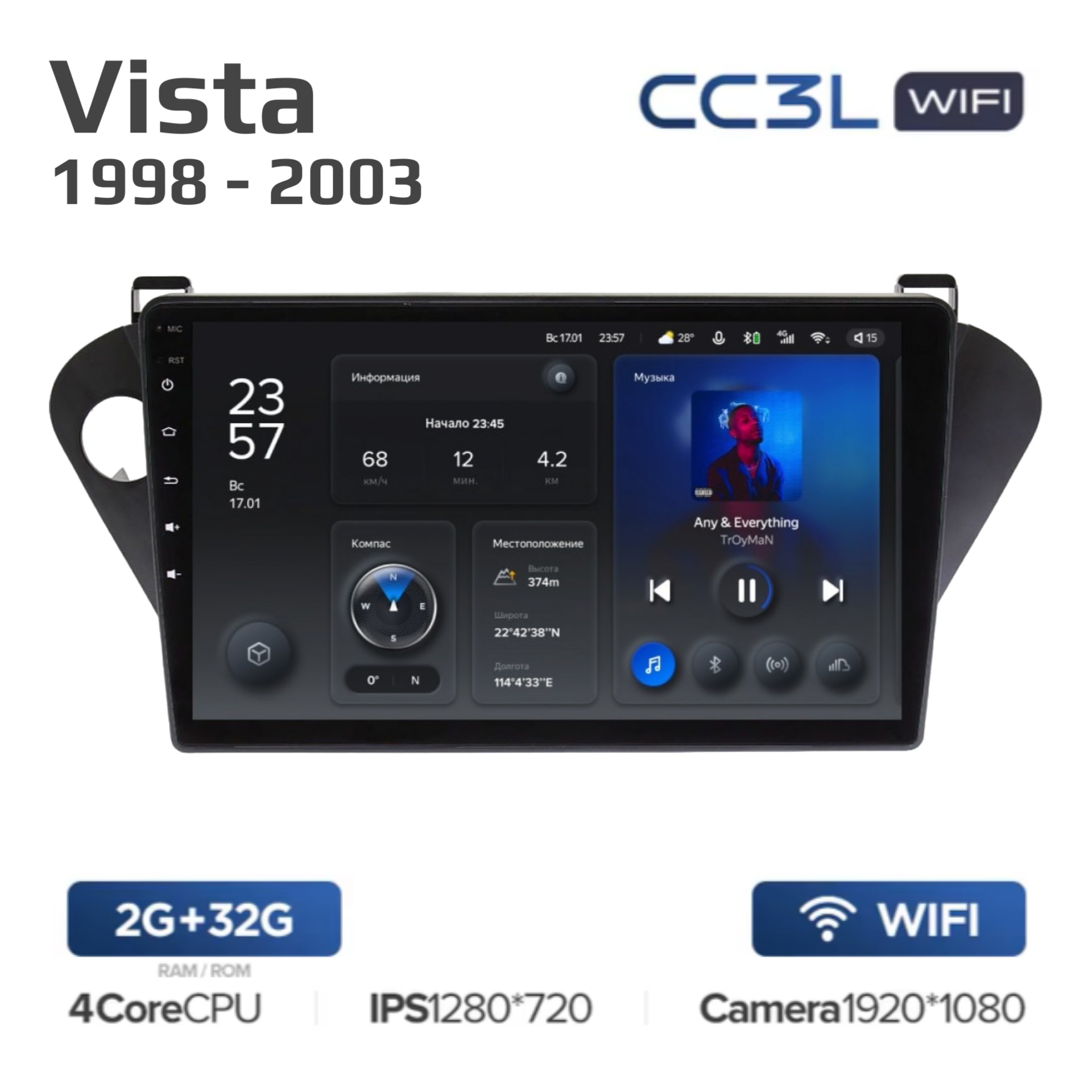 Teyes CC3L ОС Android Память 4/32, Wi-Fi, 4G, IPS экран. Звуковой процессор DSP. Процессор 8 ядер.
