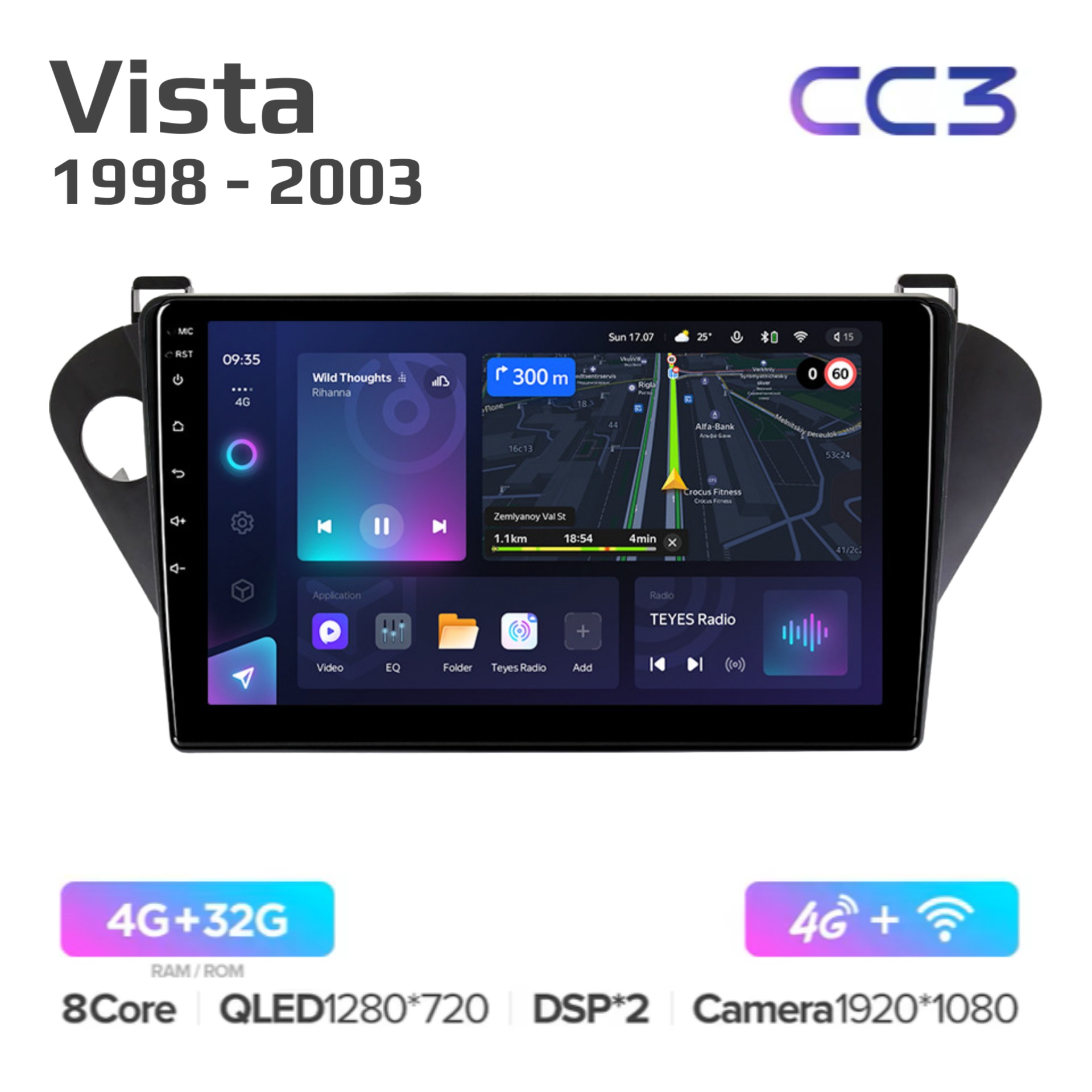 Teyes CC3 ОС Android Память 4/32, Wi-Fi, 4G, QLED экран. Звуковой процессор DSP. Процессор 8 ядер.