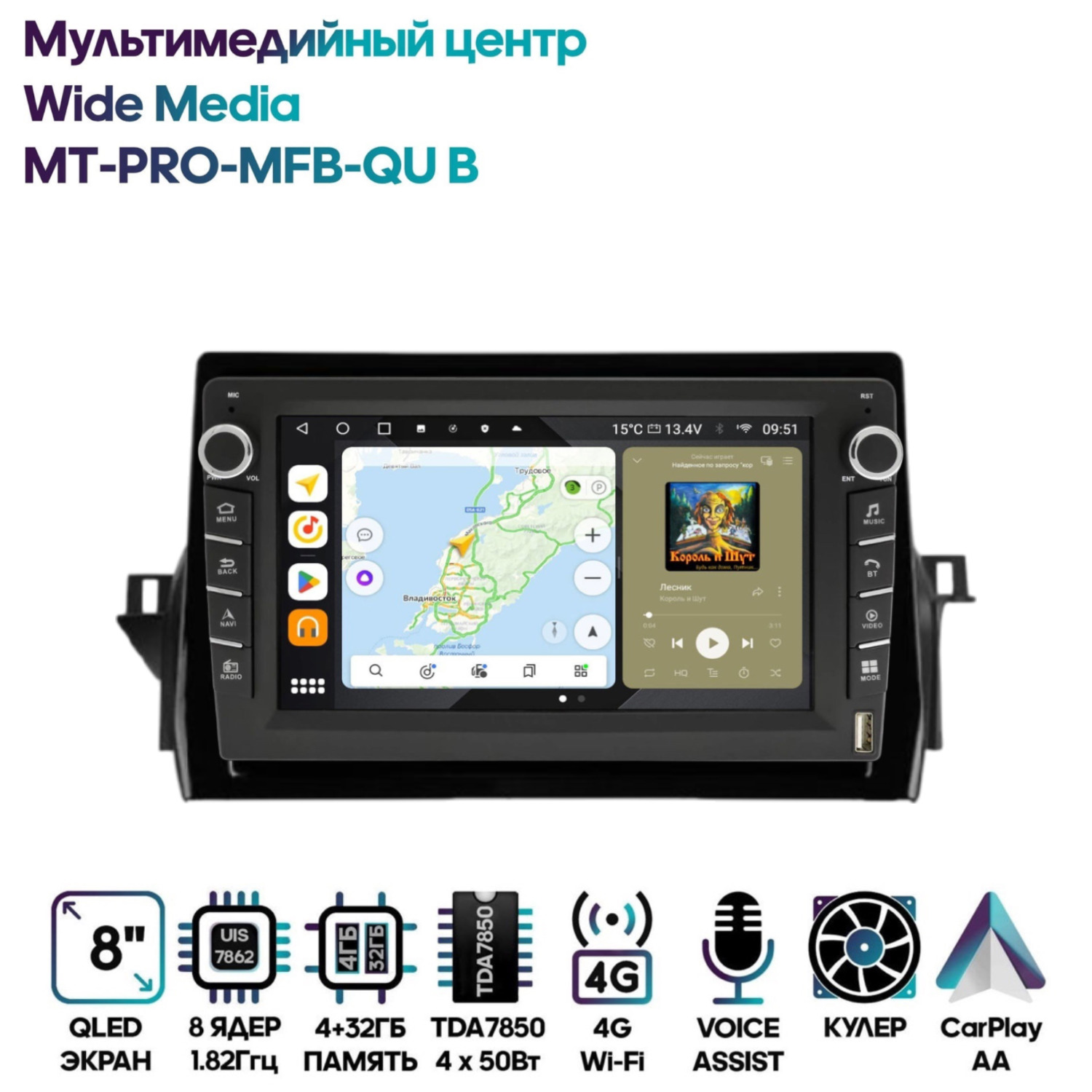 Магнитола Wide Media MT-PRO-MFB-QU B 4/32 с механической регулировкой громкости