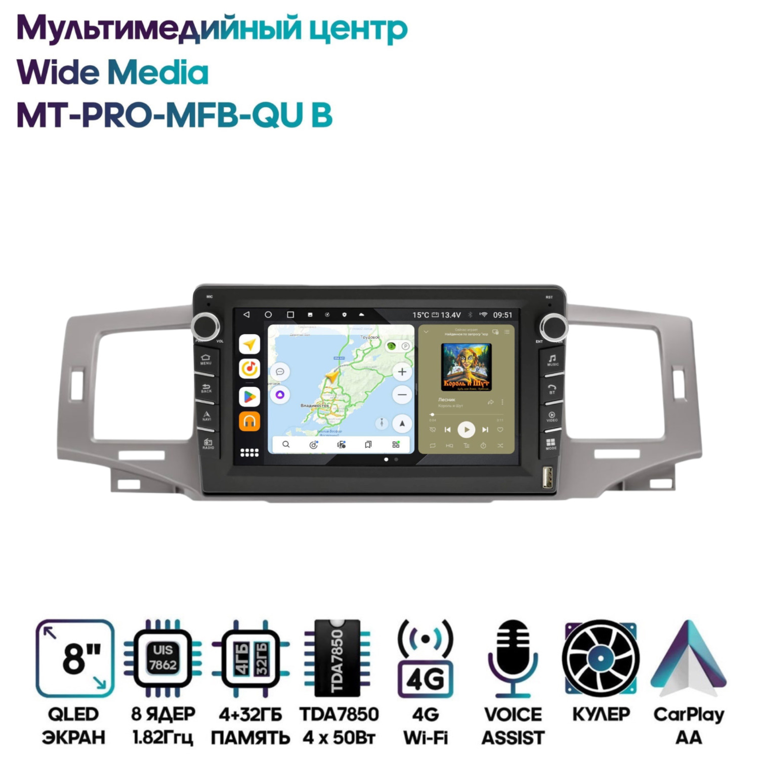 Магнитола Wide Media MT-PRO-MFB-QU B 4/32 с механической регулировкой громкости