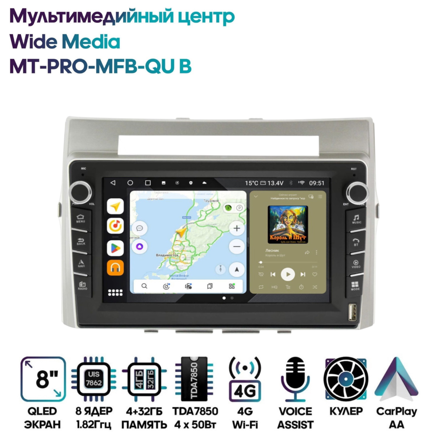 Магнитола Wide Media MT-PRO-MFB-QU B 4/32 с механической регулировкой громкости