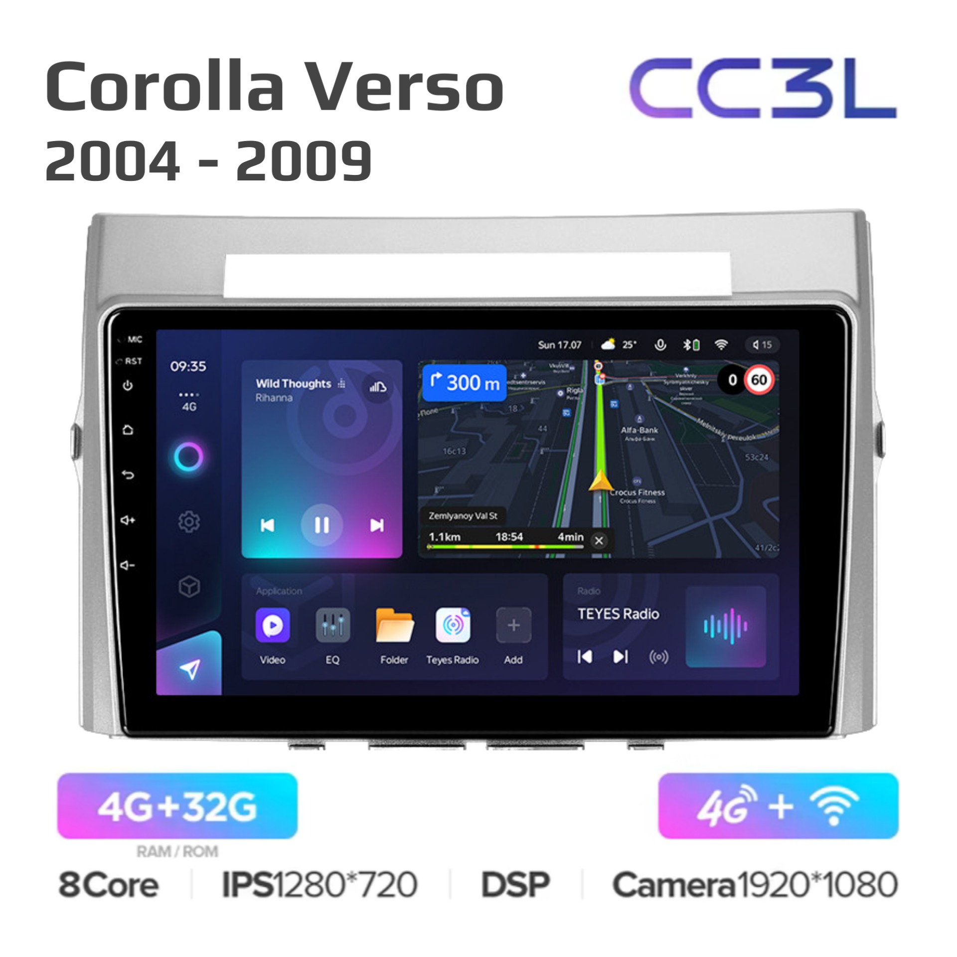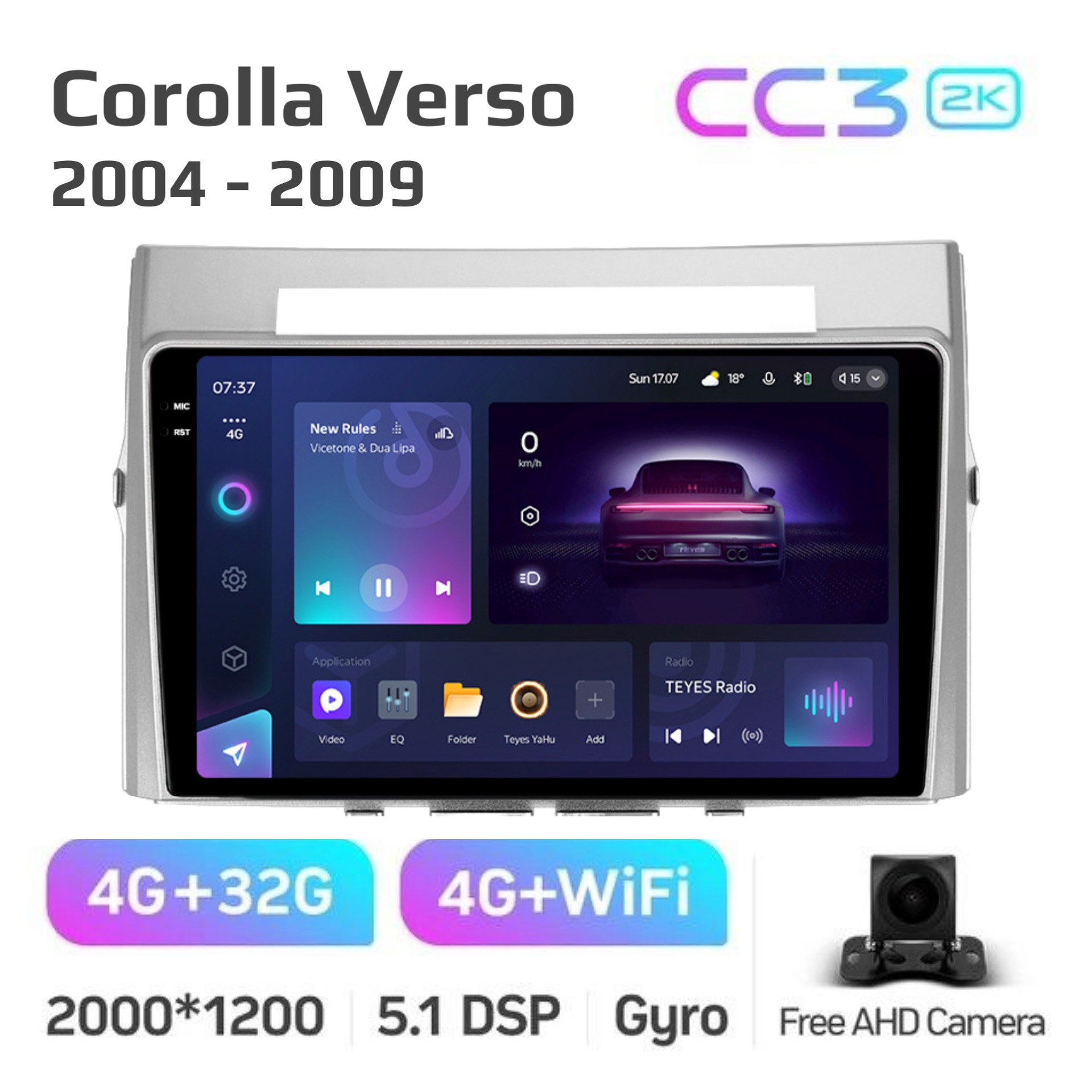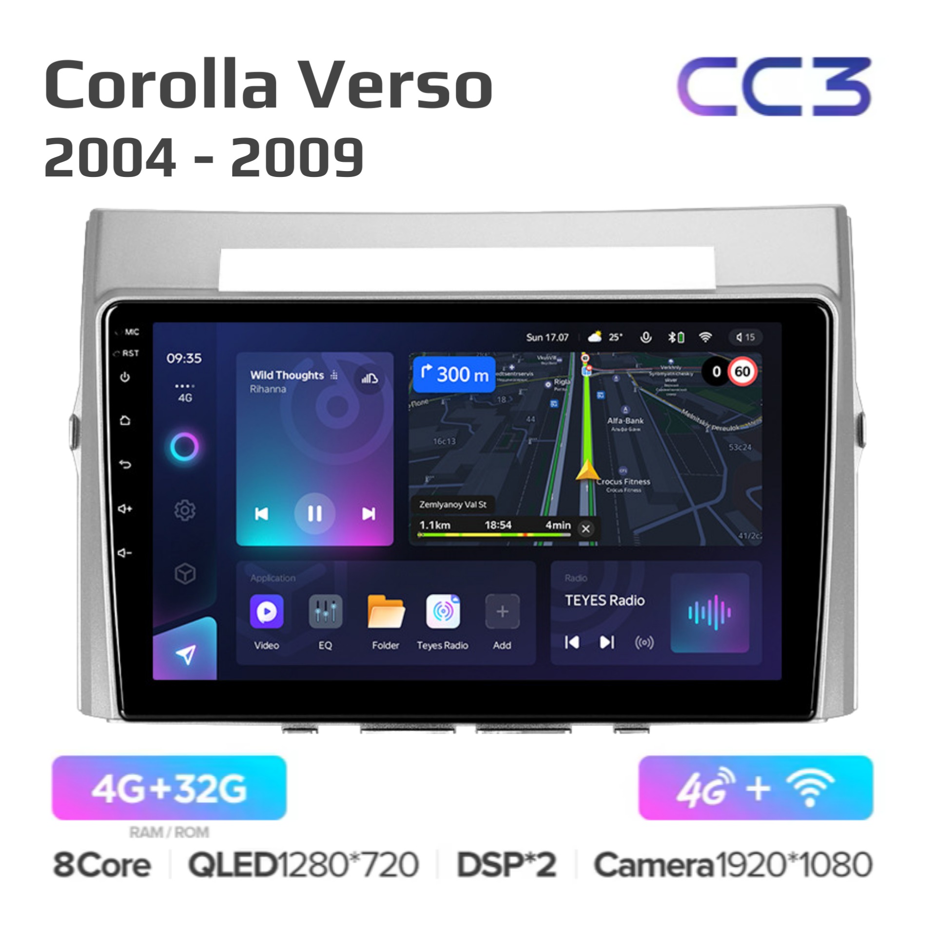 Teyes CC3 ОС Android Память 4/32, Wi-Fi, 4G, QLED экран. Звуковой процессор DSP. Процессор 8 ядер.