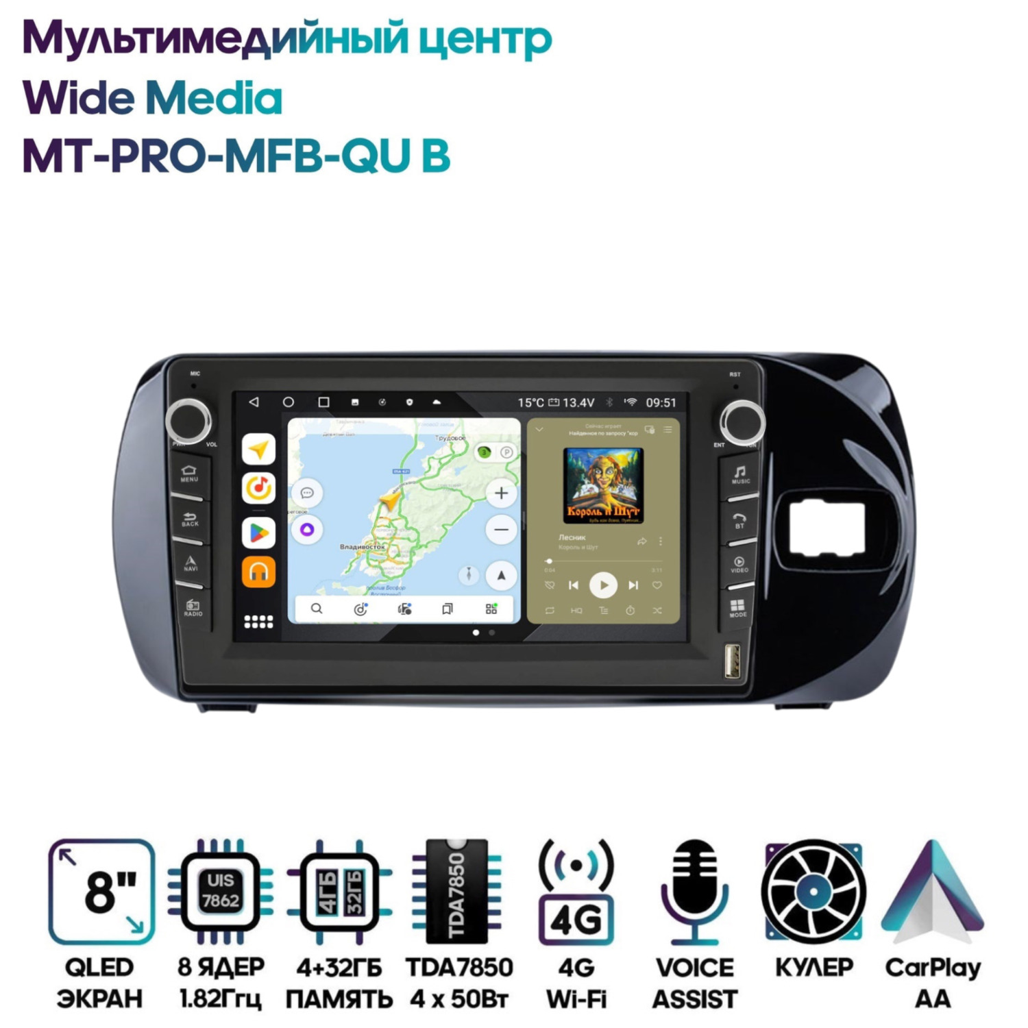 Магнитола Wide Media MT-PRO-MFB-QU B 4/32 с механической регулировкой громкости