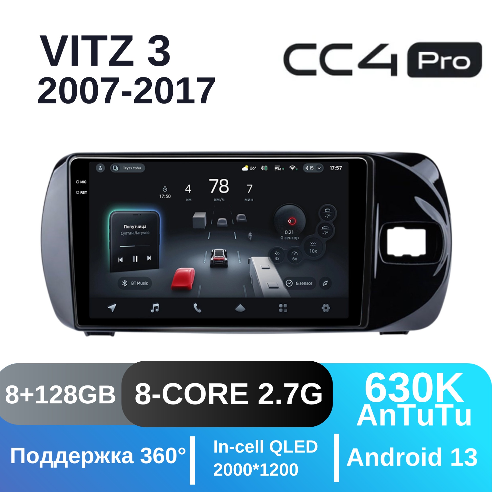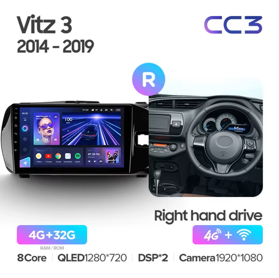 Teyes CC3 ОС Android Память 4/32, Wi-Fi, 4G, QLED экран. Звуковой процессор DSP. Процессор 8 ядер.