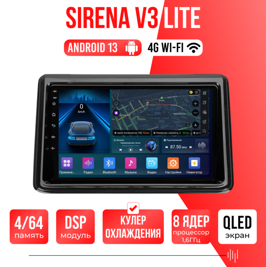 Sirena V4 PRO ОС Android Память 6/128, Wi-Fi, 4G, QLED экран. Звуковой процессор DSP. Процессор 8 ядер.