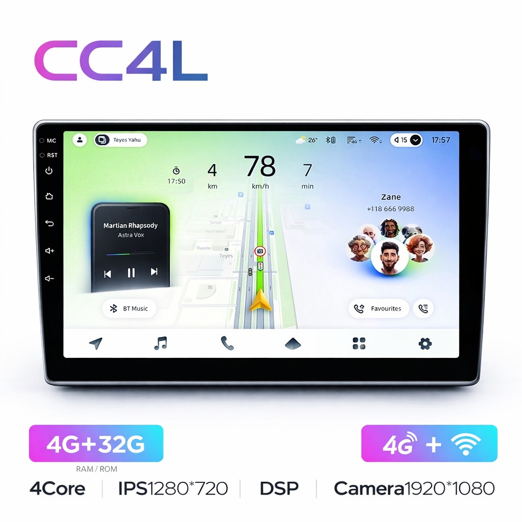 Teyes CC4L ОС Android Память 4/32ГБ. Процессор 4 ядер, 2.0 ГГц. Звуковой процессор DSP.
