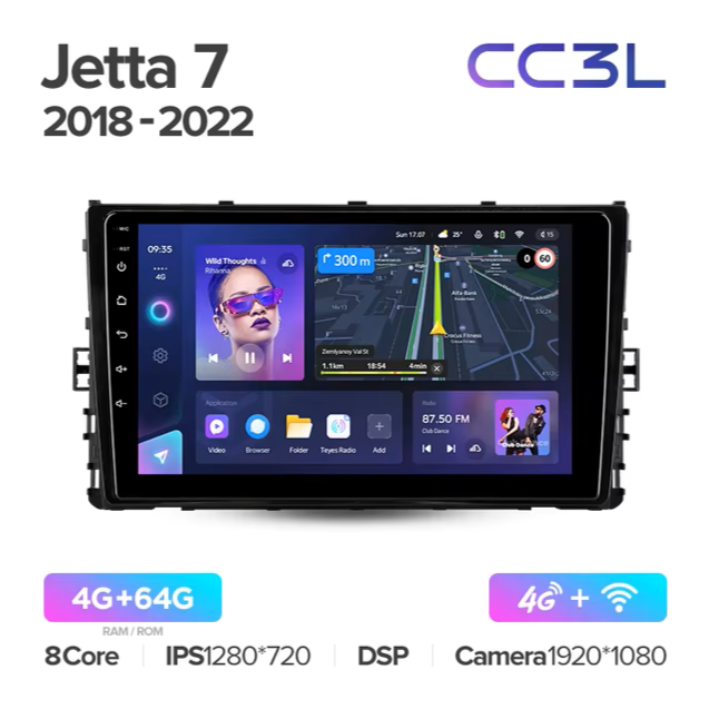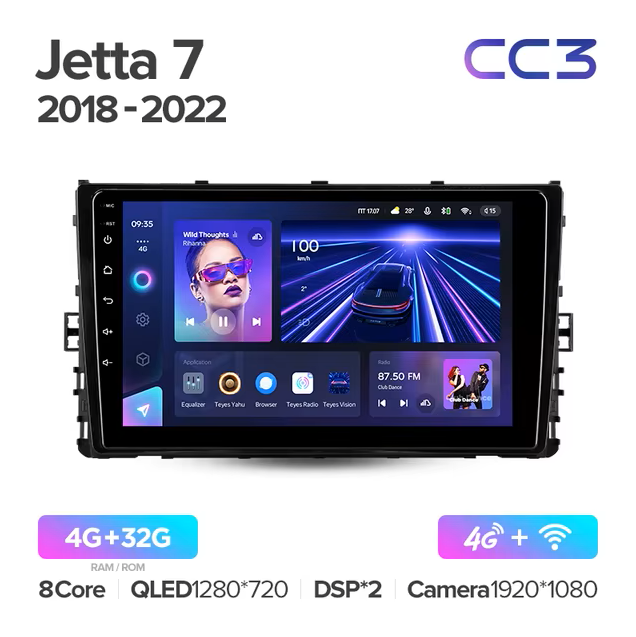 Teyes CC3 ОС Android Память 4/32, Wi-Fi, 4G, QLED экран. Звуковой процессор DSP. Процессор 8 ядер.