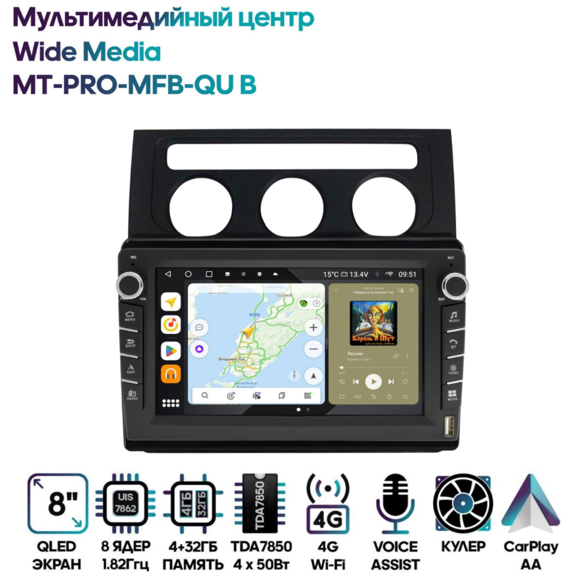 Магнитола Wide Media MT-PRO-MFB-QU B 4/32 с механической регулировкой громкости