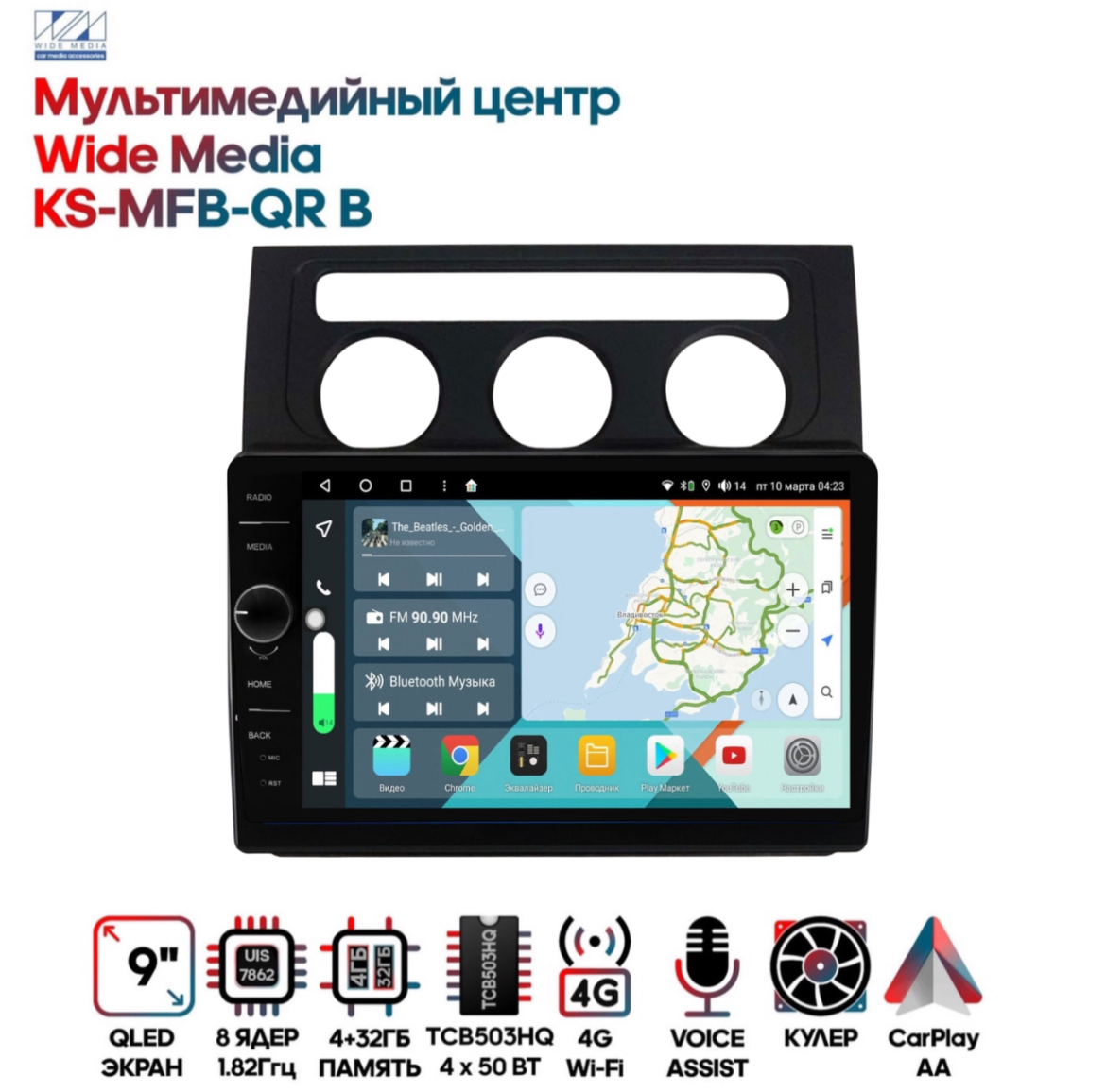 Магнитола Wide Media KS-MFB-QR B 4/32 с механической регулировкой громкости