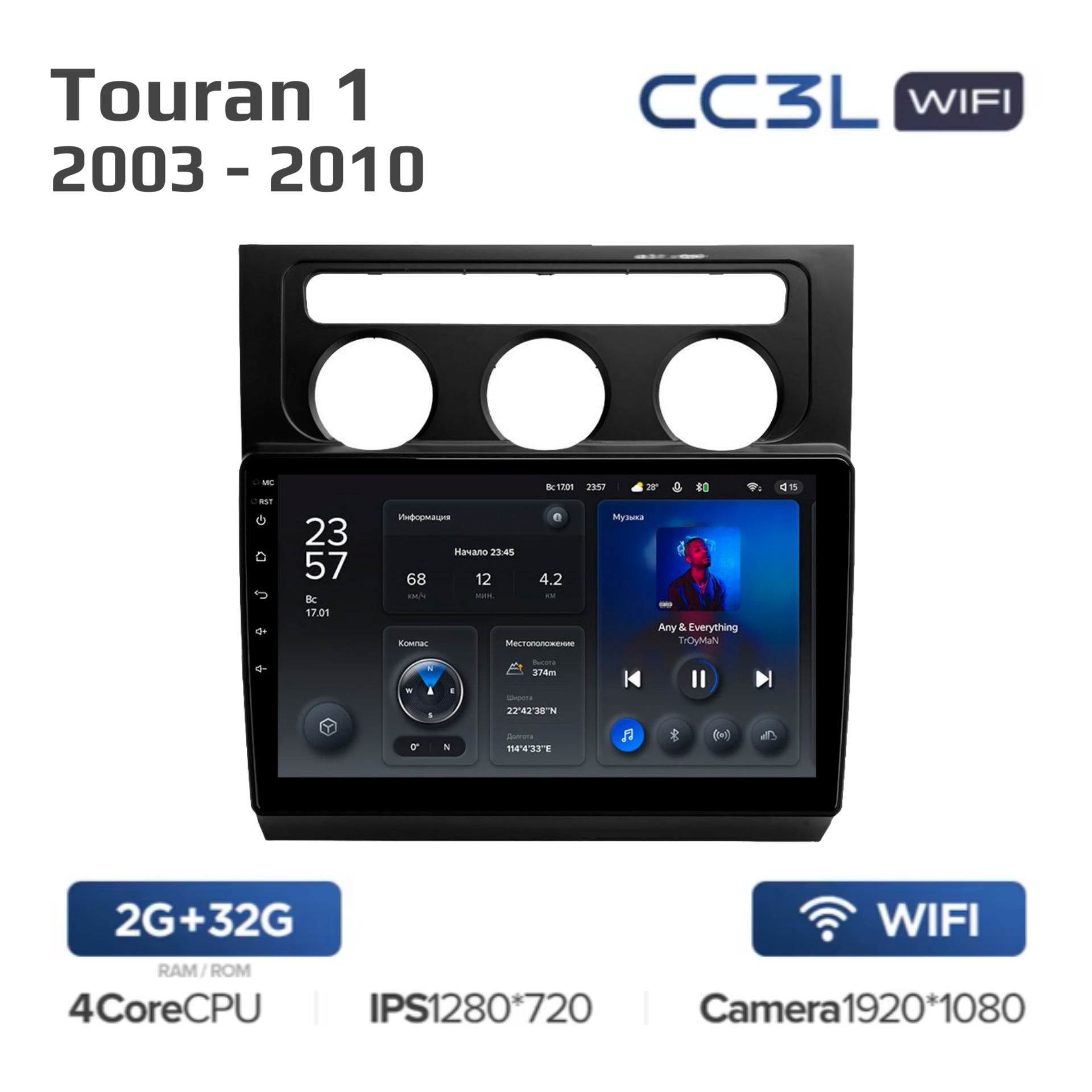 Teyes CC3L ОС Android Память 2/32, Wi-Fi, IPS экран. Звуковой процессор DSP.