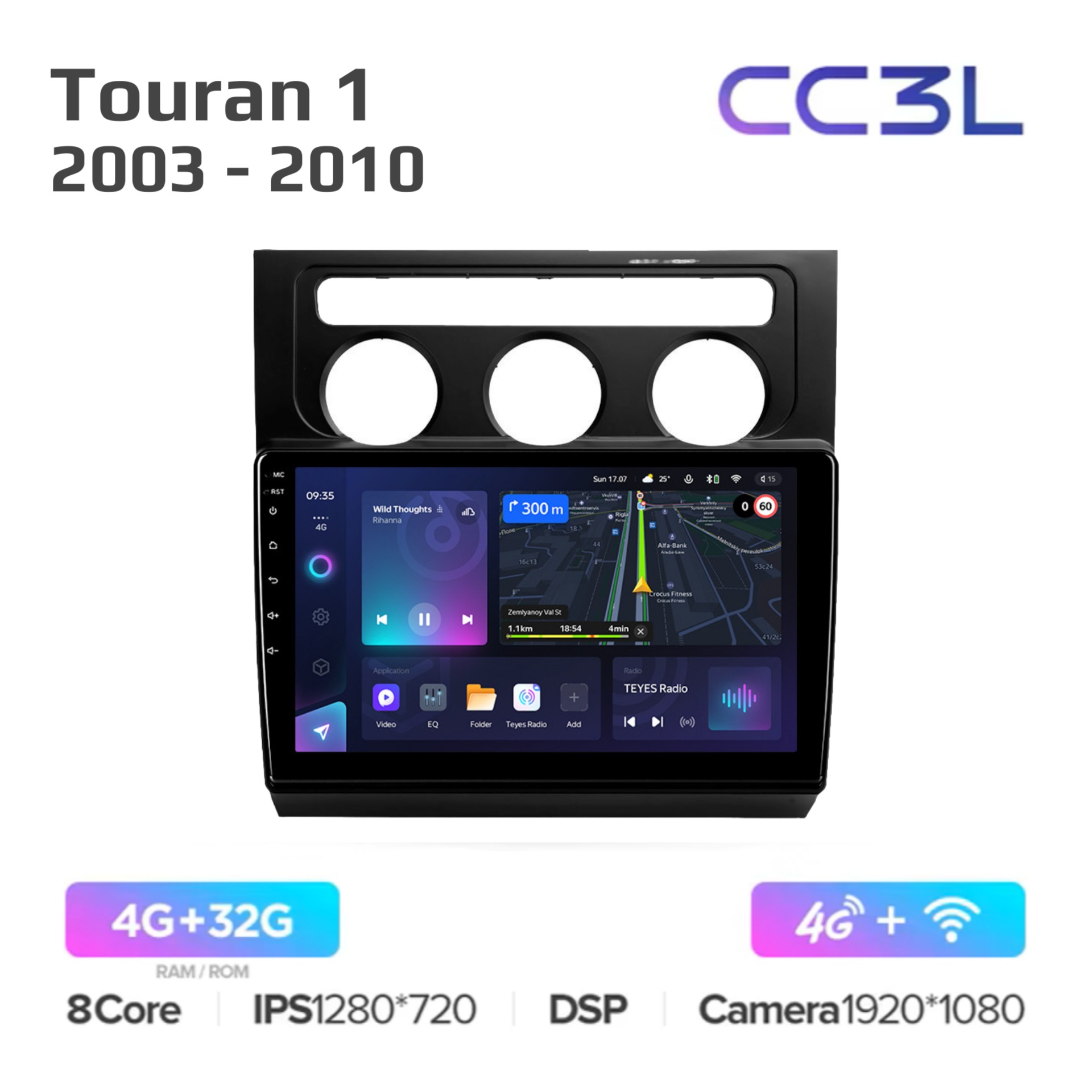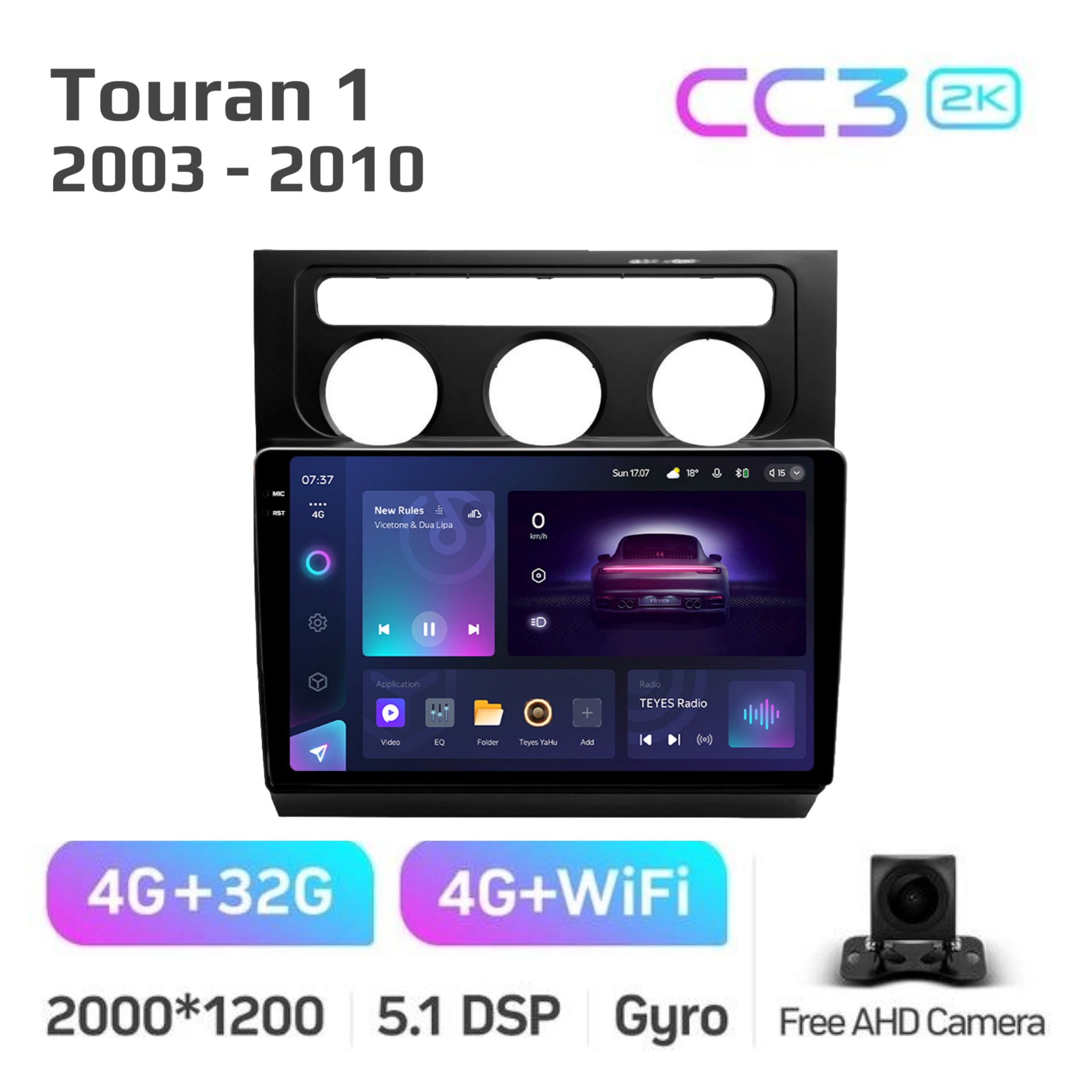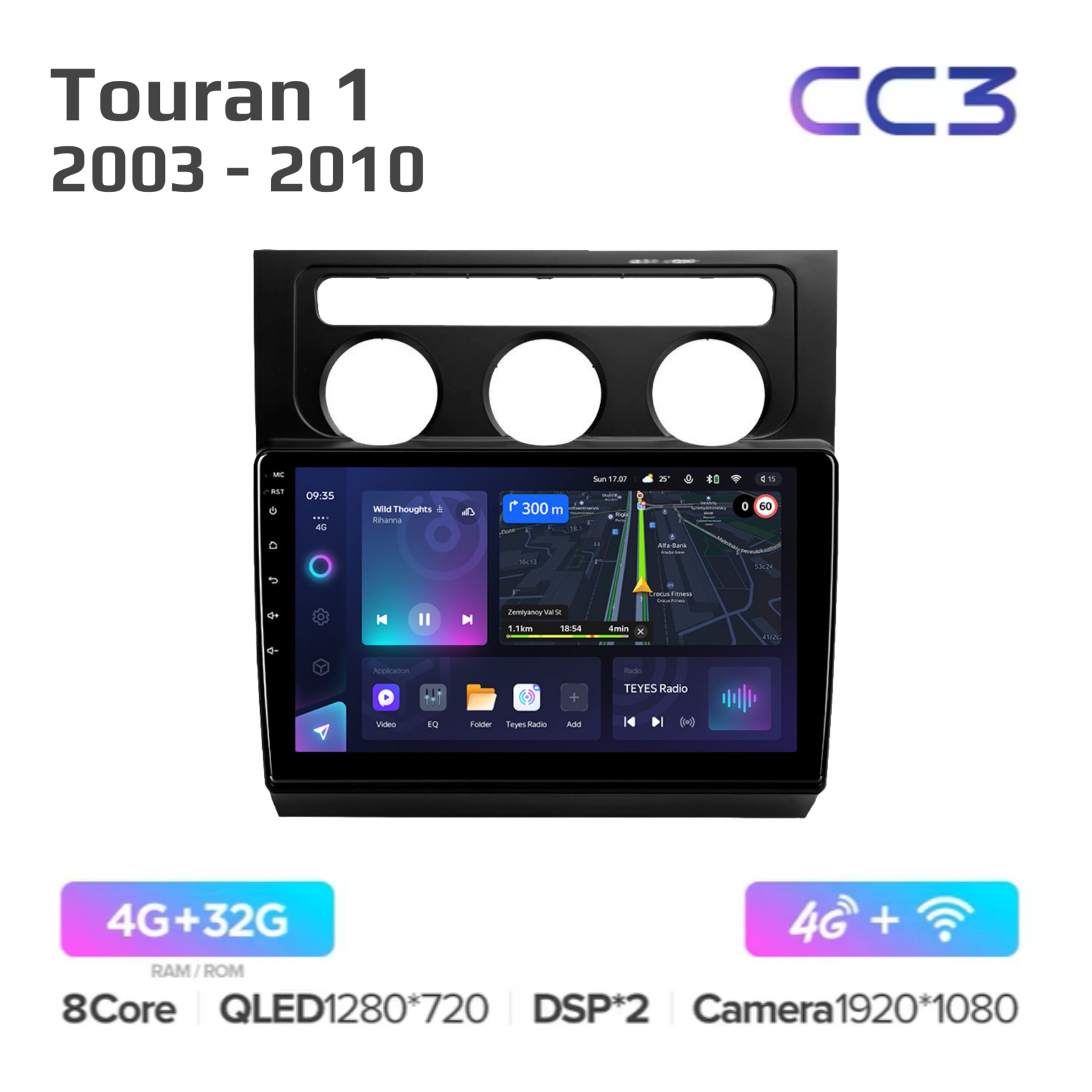 Teyes CC3 ОС Android Память 4/32, Wi-Fi, 4G, QLED экран. Звуковой процессор DSP. Процессор 8 ядер.