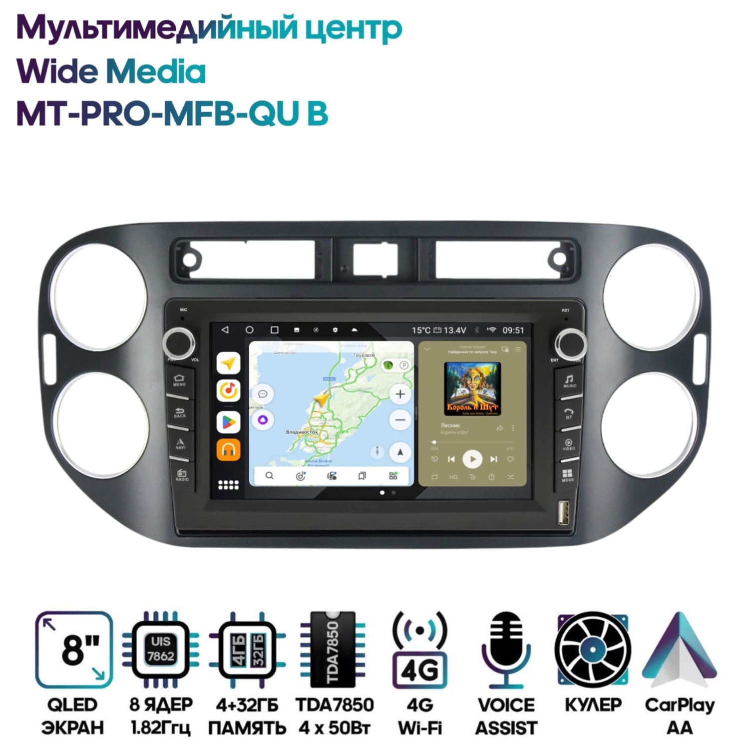 Магнитола Wide Media MT-PRO-MFB-QU B 4/32 с механической регулировкой громкости